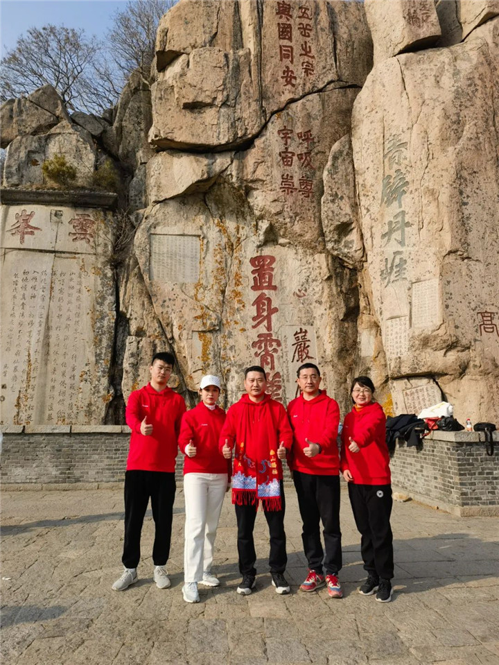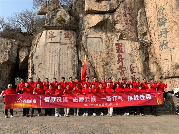 坐井观天,只有一孔之见;登山远望,方知天外有天。在锐强体育董事长兼总经理王进华先生的带领下,锐强人齐聚泰山脚下,“登高必自卑,行远必自迩”。脚踏实地一直是锐强人践行的箴言。登顶的第一步不仅是突破十八盘的第一步,更是公司在新形势下,登上新起点,开启新发展的第一步。