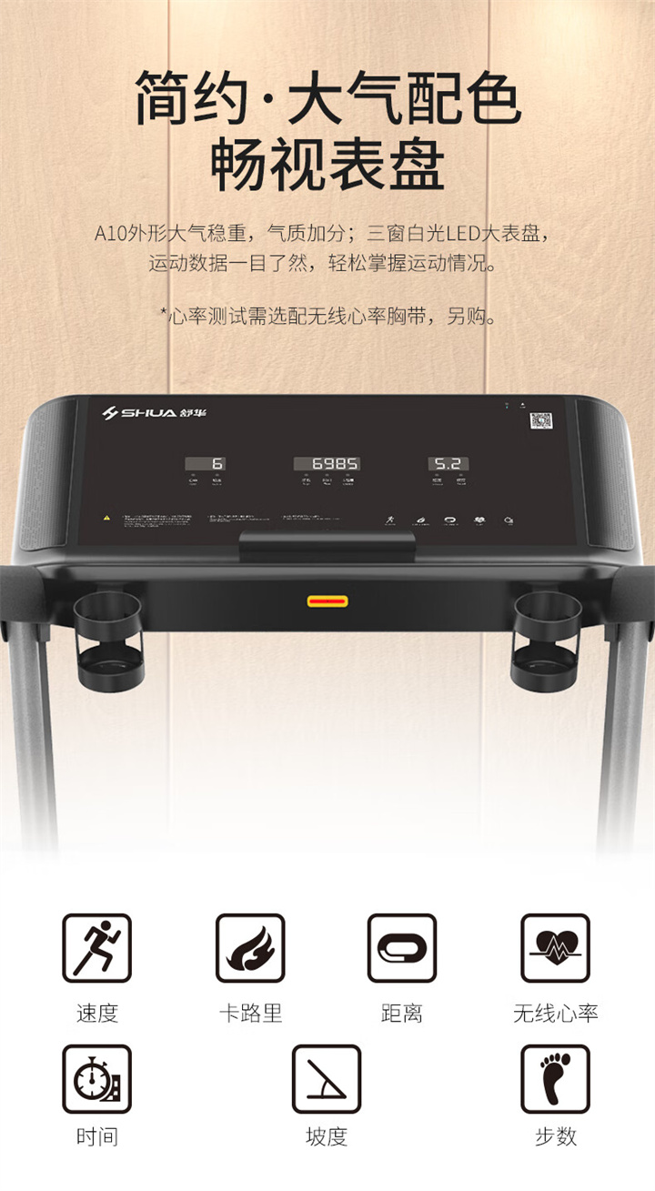 舒华I5智能家用跑步机是由舒华体育联合中国体育科学学会、上海体育大学运动科学学院教授陆大江等权威机构、专家共同研发设计。独特之处在于它结合国际科学跑步研究理论,能够针对不同用户进行运动能力测试,并根据测试结果生成因人而异的有氧运动处方。这意味着每个用户都能得到一个适合自己的运动方案,从而更好地达到运动效果。这一创新技术可以确保用户在运动过程中能够保持在最佳的区间状态,从而提高运动安全性和有效性。