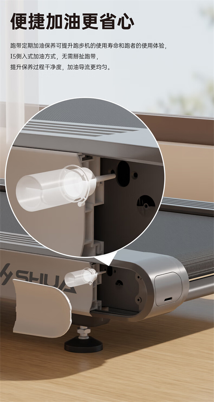 haobotiyuSH-T5100持续马力达1.25HP,具有500×1350mm的跑台,运用无线心率接收模块监测心率,运用6位硅胶减震设计,最大承重是126kg,可以满足大多数家庭的使用。