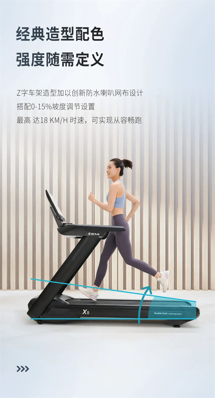 舒华X5 Pro豪华智能跑步机采用全新舒华跑步机系统,搭载21.5寸大屏,内置九种运动程序,包括场景跑、在线约跑和一键体育考试等内容,亦有教练在线科学指导和比赛互动,可在线升级,历经耐久性测试,让您使用更安全,双跑台设计,全减震系统,核心动力采用F级耐高温马达,5.0HP峰值马力,提供源源动力,让您享受每一次畅跑体验。