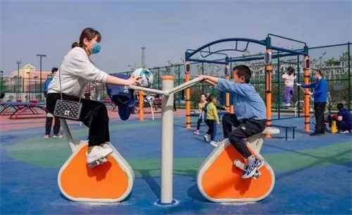 锐强体育作为全民健身解决方案供应及服务商,有幸参与了杨家埠体育公园建设,优质的产品质量,新颖的器材造型,深受当地健身群众的喜爱。